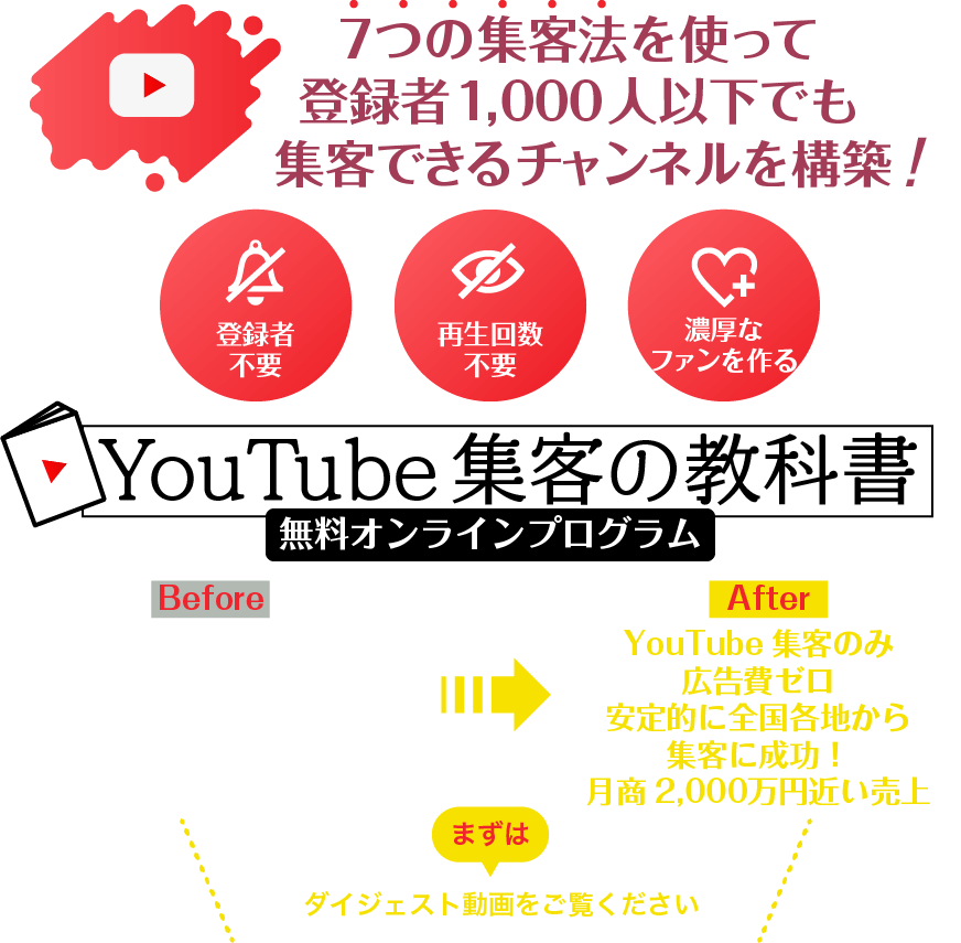 YouTube動画から毎日新規のお客さんが獲得できるようになる |
